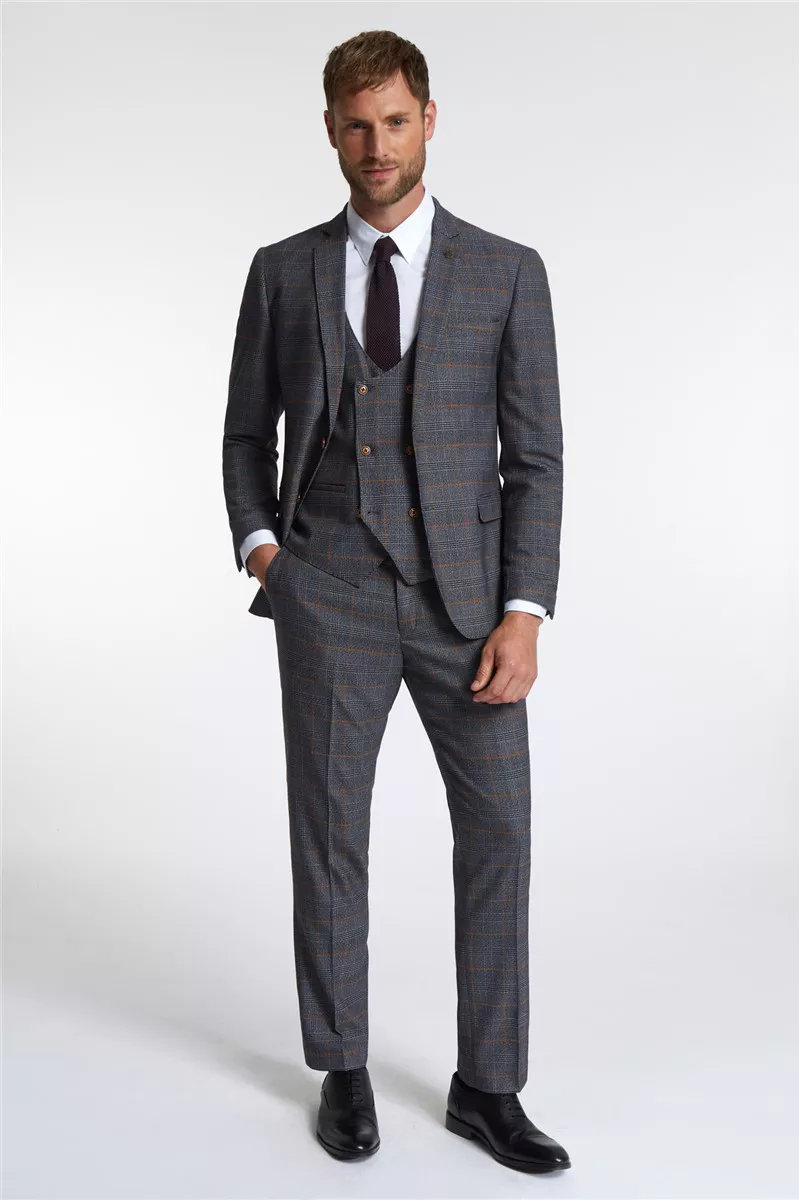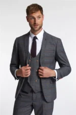 ویژگی خاص: ترکیب رنگ خاکستری با طرح چهارخانه، ظاهری متفاوت و جذاب ایجاد میکند که به راحتی با پیراهن سفید یا آبی روشن و کراوات ساده ست میشود.